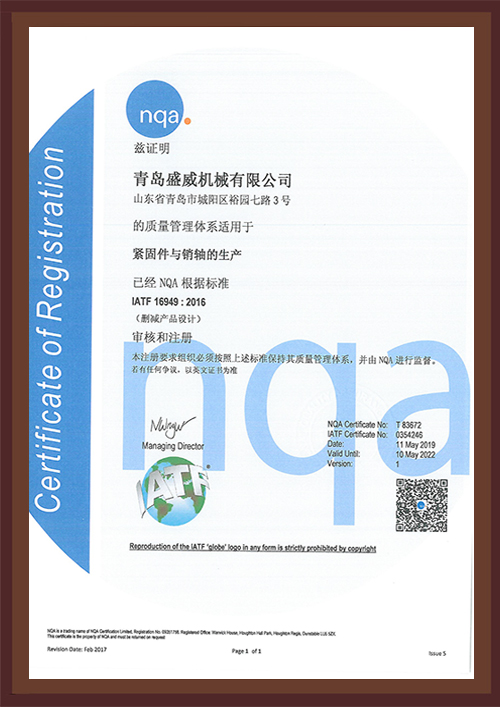 公司全體員工始終遵循"一流品質服務,持續改進管理,滿足客戶需求"的質量方針,和“鑄精品螺栓、創用戶首選”的經營理念。
